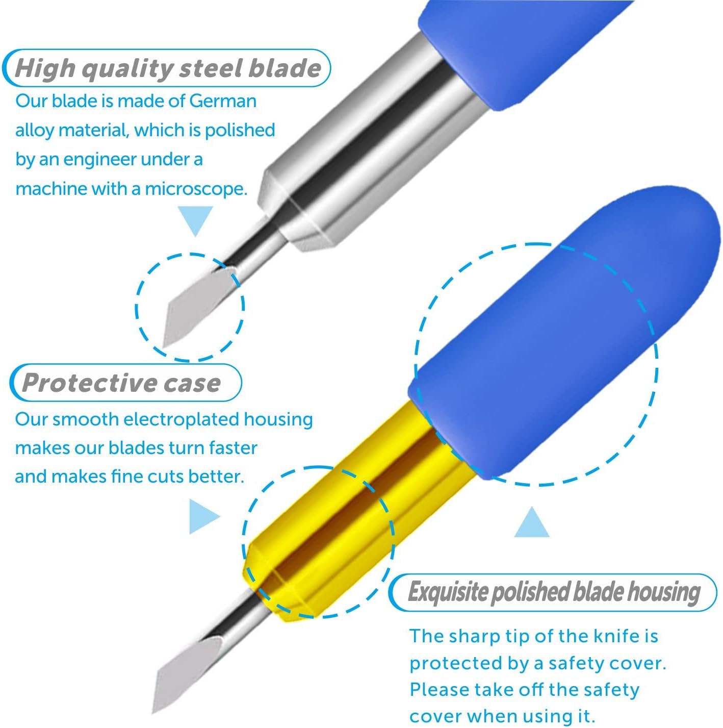 - 10 Pack Replacement Blades for cr cut joy machine and Joy Xtra machine ,Please remove the blue silicone protective cover before use!